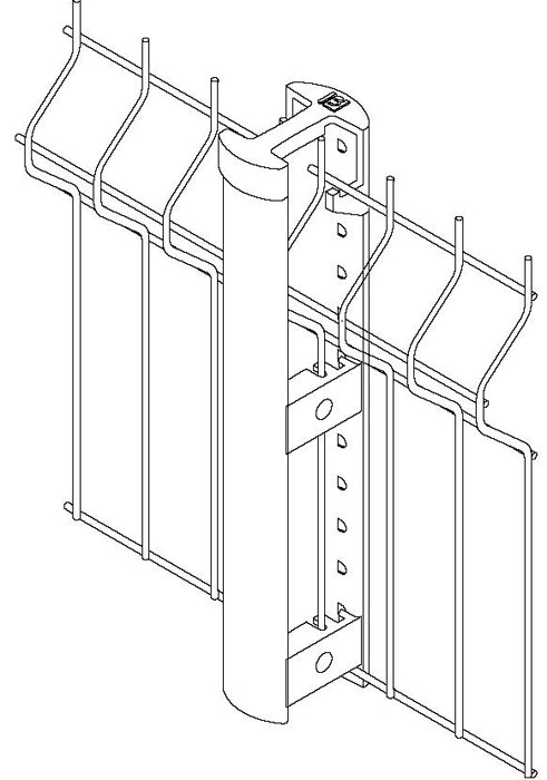 Панели монтируются к передней стенке столбов с помощью фиксаторов и крюков. В сварных столбах с прямоугольным сечением (60 х 40 х 1,5) находятся отверстия для монтажа панелей.