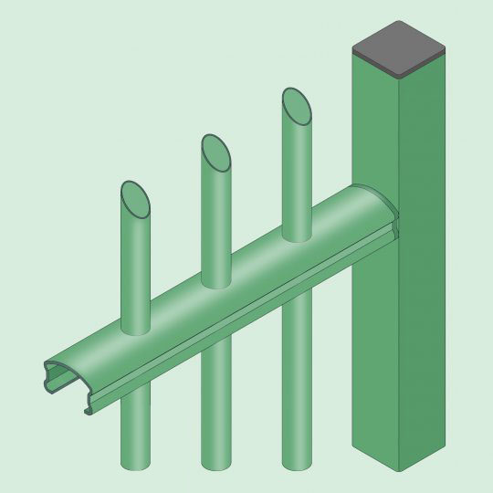 Промежуточные и конечные столбы с одним отверстием диаметром 11 мм. Отверстие сделано с 2-х сторон, снизу и сверху столба.